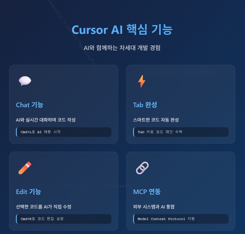 커서 AI 핵심기능: Chat, Tab, Edit, Mcp 연동