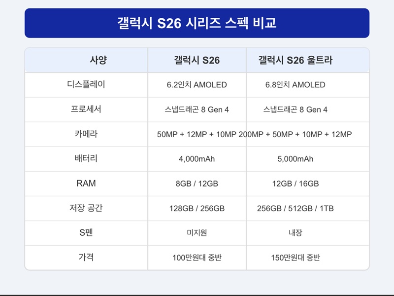 | 항목 | 갤럭시 S25 | 갤럭시 S26 |