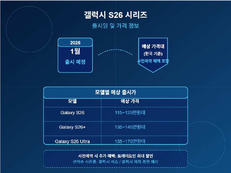 - 갤럭시 S26: 115만원 ~ 125만원대