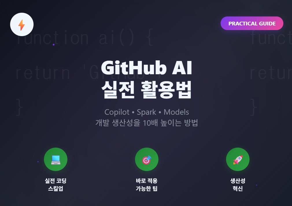 오늘은 GitHub의 대표적인 AI 기능들인 GitHub Copilot, GitHub Spark, GitHub Models를 상세히 살펴보고, 이들을 효과적으로 활용하는 방법과 다른 AI 도구들과의 차이점을 알아보겠습니다.