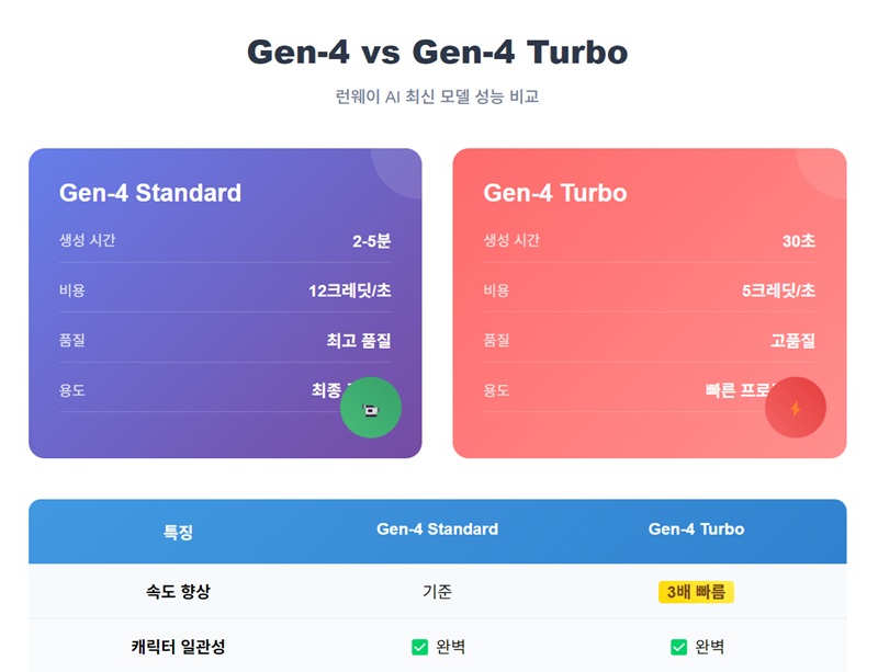 Gen-4 vs Gen-4 Turbo 전략적 활용