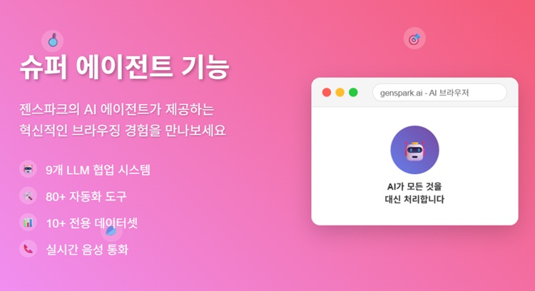 젠스파크는 브라우저, 검색 엔진, AI 에이전트를 하나로 통합한 슈퍼 앱입니다. 사용자는 별도의 앱을 설치하거나 여러 서비스를 오가지 않아도, 하나의 플랫폼에서 모든 디지털 활동을 처리할 수 있습니다.
