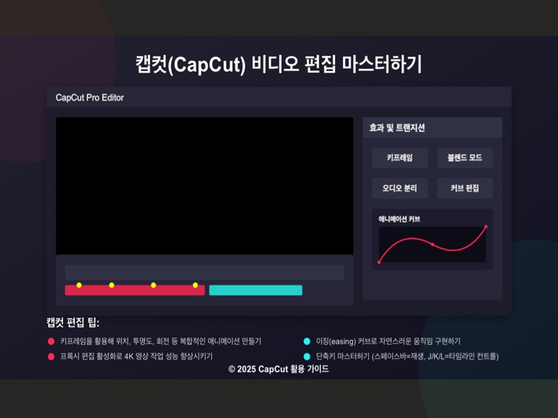 - 커브 편집: 캡컷의 고급 모드에서는 애니메이션 커브를 편집할 수 있습니다. 선형이 아닌 이징(easing) 커브를 적용하면 자연스러운 움직임을 구현할 수 있습니다