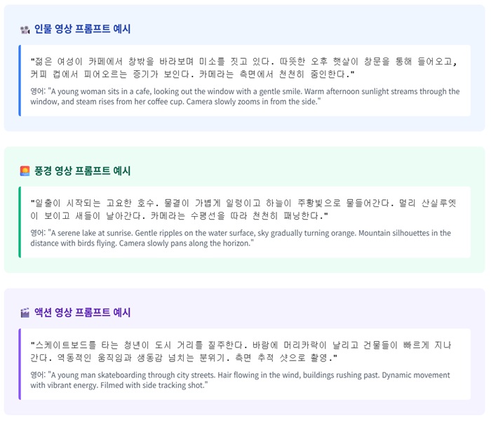 - 간단한 텍스트 프롬프트로 동영상 생성