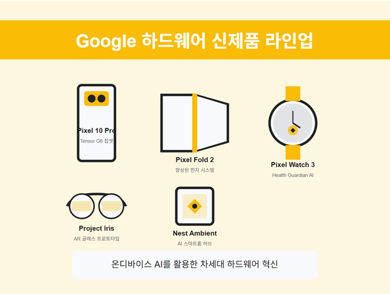 Google은 Pixel 제품군의 신제품을 다수 공개했습니다. Pixel 10과 Pixel 10 Pro는 Google이 자체 개발한 새로운 'Tensor G6' 칩셋을 탑재하고 있으며, 온디바이스 AI 처리 능력이 크게 향상되었습니다.